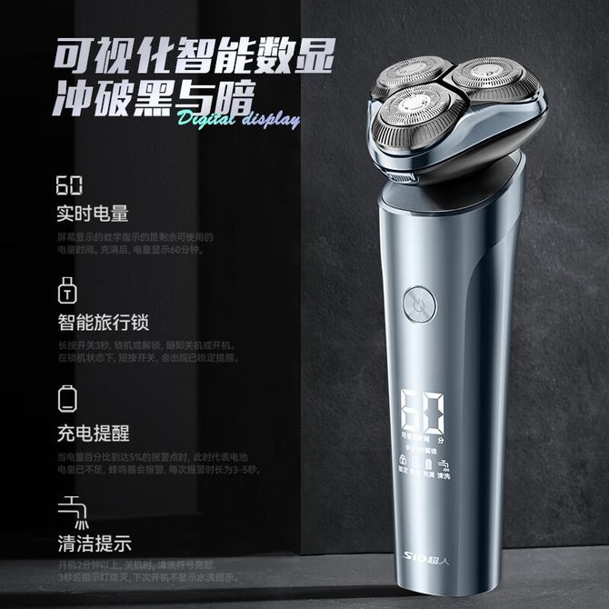 超人/SID 充电式胡须刀智能数显剃胡刀 RS7375 剃须 独立浮动刀头,IPX7级全身防水,大功率强劲动 兑换价格 15600 里程 会员卡别 终身白金卡 白金卡 金卡 银卡 普通卡 儿童卡 服务 由 弘济家电 发货并提供售后 颜色: 黑色 银色 购买数量: 件 库存件 配送地址: 立即购买 加入购物车 成功添加到购物车 关闭 购物车共有 种商品 总金额为: 组合销售 产品介绍 产品规格 售后服务 产品咨询 发现好货 映趣 电动剃须刀男士刮胡刀充电式三刀 BlackStone黑色 3100 里程 飞利浦/Philips 电动剃须刀 S2509/S2508 三刀头 1小时充电 全身水洗 男士电动剃须刀胡须刀干湿两用须刨高效闪充 10900 里程 朗威 剃须刀电动剃须刀充电式刮胡刀电动男士双头浮动胡须胡子刀 RS182 1100 里程 超人/SID 电动剃须刀 RS210/RS215双刀头 全身水洗 便携式小巧迷 你出差旅行车载男士电动刮胡刀 2600 里程 小米 电动剃须刀小巧便携刮胡刀 Type-c充电全身水洗低噪音充电式胡须刀S100 4000 里程