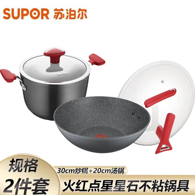 苏泊尔(SUPOR) 锅具套装火红点星星石家用不粘炒菜锅30cm炒锅20cm汤锅炖煮两件套 星星石涂层不易粘锅防刮耐磨;30cm炒锅 20cm汤锅 兑换价格 20000 里程 会员卡别 终身白金卡 白金卡 金卡 银卡 普通卡 儿童卡 服务 由 广西自贸区贝佳网络科技有限公司 发货并提供售后 颜色: 其他 购买数量: 件 库存件 配送地址: 立即购买 加入购物车 成功添加到购物车 关闭 购物车共有 种商品 总金额为: