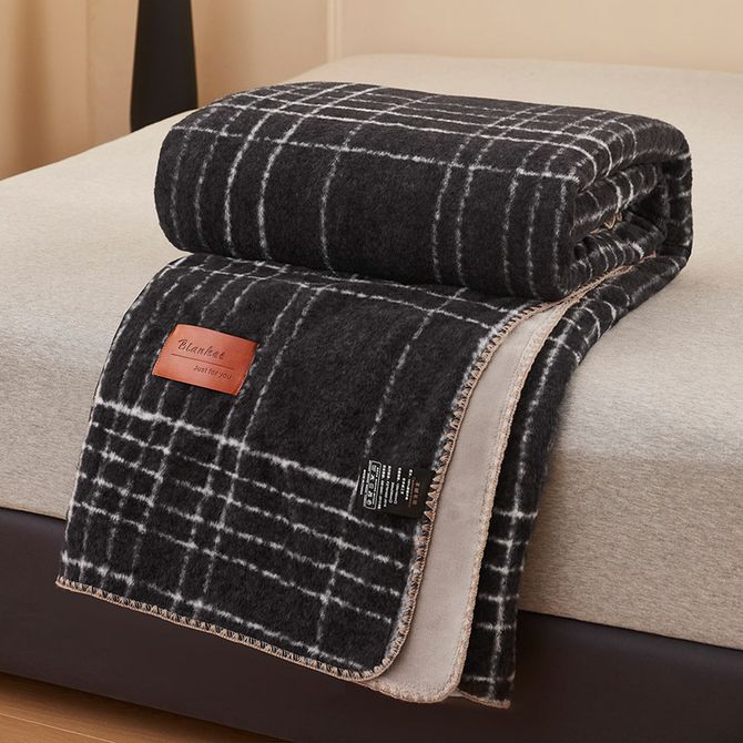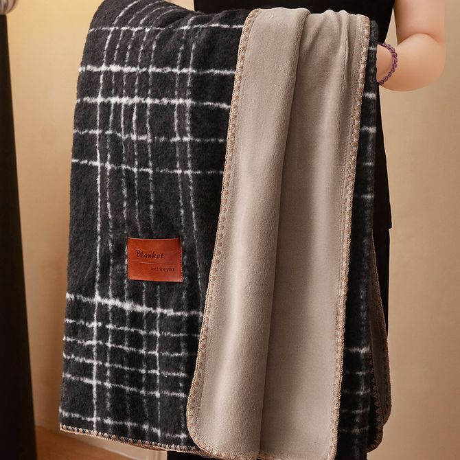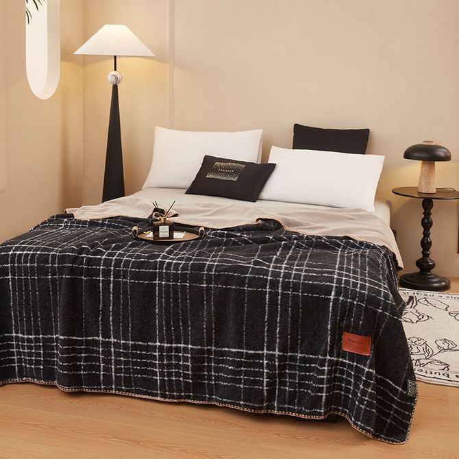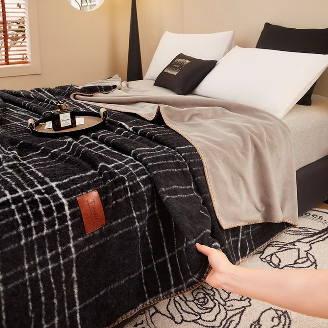 逸轩/yixuan 冬日宅家必备 仿羊驼棉毛绒毛毯 仿羊绒-宝莉黑白