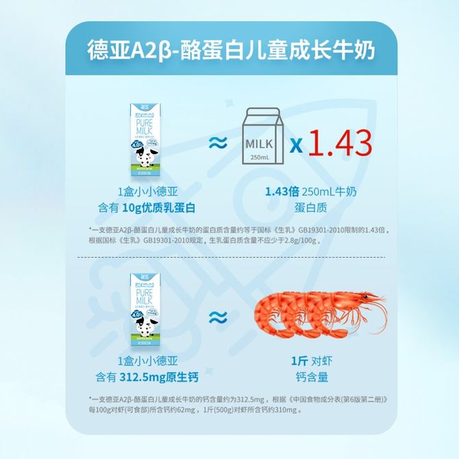 德亚 A2β-酪蛋白儿童牛奶礼盒250ML*10 优质纯牛奶富含酪蛋白学生儿童营养早餐奶