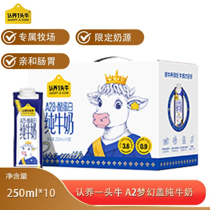 认养一头牛 A2奶梦幻盖纯牛奶250ml*10盒(新旧包装随机发货)优质奶源青少年儿童健康早餐奶 250ml*10盒 兑换价格 2400 里程 会员卡别 终身白金卡 白金卡 金卡 银卡 普通卡 儿童卡 服务 由 广西桂人礼互联网科技有限公司 发货并提供售后 规格: 礼盒 购买数量: 件 库存件 配送地址: 立即购买 加入购物车 成功添加到购物车 关闭 购物车共有 种商品 总金额为: 组合销售 产品介绍 产品规格 售后服务 产品咨询 发现好货 蒙牛 特仑苏纯牛奶苗条装250ml×12盒 2900 里程 三元 经典小方白全脂纯牛奶250ml*24盒牛奶 整箱 3400 里程 伊利金典纯牛奶250ml*12盒整箱 2200 里程 三元 极致 全脂纯牛奶250ml*12盒 优质乳蛋白 恪守天然亲和 2900 里程 伊利 金典纯牛奶整箱 250ml*12盒 原生高钙3.6g乳蛋白 2000 里程