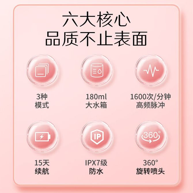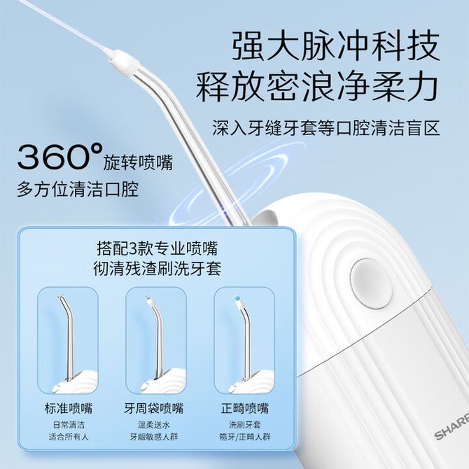 夏普/Sharp 智能便携冲牙器家用洗牙器 IPX7级防水便携式洁牙器 DO-WFND8C-PK 智能便携冲牙器家用洗牙器 兑换价格 15700 里程 会员卡别 终身白金卡 白金卡 金卡 银卡 普通卡 儿童卡 服务 由 当益家电 发货并提供售后 颜色: 玫瑰粉 购买数量: 件 库存件 配送地址: 立即购买 加入购物车 成功添加到购物车 关闭 购物车共有 种商品 总金额为: 组合销售 产品介绍 产品规格 售后服务 产品咨询 发现好货 小米 声波电动牙刷家用男女高频振动充电式防水牙刷 T300标准版 4400 里程 飞利浦/Philips 电动牙刷头HX9021适配HX6511/HX6730/HX6761/HX3226/ 2400 里程 飞利浦/Philips 电动牙刷 HX2431 成人声波震动牙刷 净力刷 2种模式 温和清洁 电动牙刷 双色可选 6500 里程 小米 米家声波电动牙刷 声波洁牙柔感护龈 超长续航 T200蓝色 4400 里程 小米 声波电动牙刷家用电牙刷男女士牙刷高频振动充电式防水牙刷牙齿清洁 4400 里程