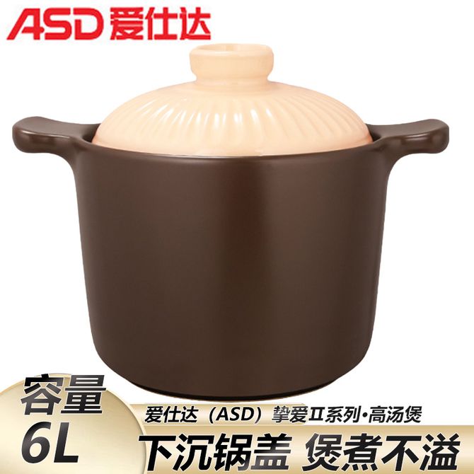 爱仕达/ASD 砂锅 6L大容量家用养生煲陶瓷锅耐高温陶瓷煲炖煮砂锅 挚爱Ⅱ系列高汤煲适合推荐家庭6-8人 下沉锅盖 煲煮不溢;釉面光滑 省心易洁 该款为6.5L容量高汤煲;详情共用 兑换价格 7000 里程 会员卡别 终身白金卡 白金卡 金卡 银卡 普通卡 儿童卡 服务 由 广西自贸区贝佳网络科技有限公司 发货并提供售后 颜色: 其他 购买数量: 件 库存件 配送地址: 立即购买 加入购物车 成功添加到购物车 关闭 购物车共有 种商品 总金额为: 组合销售 产品介绍 产品规格 售后服务 产品咨询 发现好货 荣事达/Royalstar 煲锅 砂锅煲汤熬药煮粥焖饭砂锅陶瓷炖汤沙锅家用养生汤锅瓦煲瓦罐4.6L 3900 里程 陶煲王(TAOBAOWANG) 日式砂锅煲1.5L汤锅陶瓷沙锅耐高温PB-2107K 3600 里程 炊大皇/Cookerking 砂锅5L耐高温陶瓷煲多用炖锅汤锅家用养生煲陶瓷锅明火煤燃气灶专用TCXW5002 4400 里程 苏泊尔(SUPOR) 砂锅煲汤锅炖锅4.5L养生煲耐高温不开裂陶瓷煲EB45MAT01 6000 里程 陶煲王(TAOBAOWANG) 1.5L土砂锅无釉陶瓷耐高温家用煲汤燃气专用FPPB-0822F 3000 里程