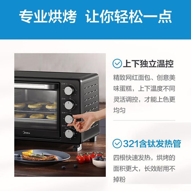 美的/Midea 电烤箱小型烤箱 家用多层旋钮操作 25L容量 PT25X5 上下双管;精准定时;一机多用;防爆玻璃门;四段停顿们; 兑换价格 10300 里程 会员卡别 终身白金卡 白金卡 金卡 银卡 普通卡 儿童卡 服务 由 泓久电器专营店 发货并提供售后 颜色: 黑色 购买数量: 件 库存件 配送地址: 立即购买 加入购物车 成功添加到购物车 关闭 购物车共有 种商品 总金额为: 组合销售 产品介绍 产品规格 售后服务 产品咨询 发现好货 美的/Midea 空气炸锅 5L可视窗口免翻面电炸锅 双旋钮控时控温 食品接触不粘涂层 MF-KZE5089 8700 里程 荣事达5.5L大容量 家用智能触控多功能空气炸锅 RS-AF181L 10900 里程 美的/Midea 空气炸锅家用新款一体多功能免翻面电炸锅电烤箱华凌烹饪机KZE4501TQ 6500 里程 美的/Midea 空气炸锅 5L家用大容量 可视窗口 免翻面 蒸汽嫩炸 金属内腔 多功能智能精准控温 电炸锅KZC5089 5L 10700 里程 美的/Midea 空气炸锅 免翻面可视家用大容量 5L 多功能 不沾易洗 蒸汽嫩炸 9600 里程