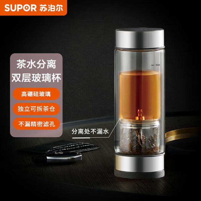 苏泊尔(SUPOR) 双层玻璃泡茶办公室大容量耐高温水杯子礼盒360ml伯爵黑KC36JH10 高硼硅耐热玻璃安心清透易清洁 316L不锈钢滤网材质安全更耐用 创新旋转式茶水分离 茶水浓淡随心掌控 兑换价格 8700 里程 会员卡别 终身白金卡 白金卡 金卡 银卡 普通卡 儿童卡 服务 由 人人余厨具专营店 发货并提供售后 颜色: 黑色 购买数量: 件 库存件 配送地址: 立即购买 加入购物车 成功添加到购物车 关闭 购物车共有 种商品 总金额为: 组合销售 产品介绍 产品规格 售后服务 产品咨询 发现好货 乐扣乐扣(LOCK&LOCK)塑料水杯男士女士茶杯户外运动杯子便携随手杯学生茶瓶防漏创意水瓶HLC644系列 1500 里程 绿珠lvzhu 双层玻璃杯 创意便携商务大容量 茶水分离过滤办公泡茶水杯子200ml 带杯套 B730木纹 2700 里程 德铂(Debo)特尔斯茶水分离双层玻璃杯 旅行茶杯办公水杯 DEP-746 4800 里程 如艺 格拉斯水晶杯家用泡茶杯喝水杯(颜色随机) 1100 里程 德铂Debo 520ML阿德莱水杯便携式咖啡杯高颜值耐热玻璃杯dep-ds342磨砂款 2300 里程