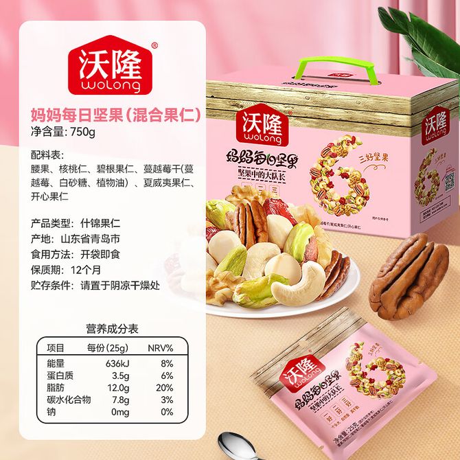 沃隆(wolong) 妈妈每日坚果(升级版)750g 混合小包装果仁干果坚果仁 沃隆(wolong) 妈妈每日坚果(升级版)750g 混合小包装果仁干果坚果仁 兑换价格 5600 里程 会员卡别 终身白金卡 白金卡 金卡 银卡 普通卡 儿童卡 服务 由 繁星尚品 发货并提供售后 规格: 组合 购买数量: 件 库存件 配送地址: 立即购买 加入购物车 成功添加到购物车 关闭 购物车共有 种商品 总金额为: