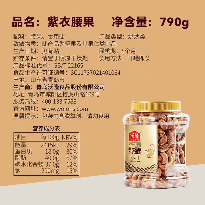沃隆(wolong) 紫衣腰果果仁790g*1罐 腰果仁坚果炒货休闲零食罐装大颗粒 沃隆(wolong) 紫衣腰果果仁790g*1罐 腰果仁坚果炒货休闲零食罐装大颗粒 兑换价格 3500 里程 会员卡别 终身白金卡 白金卡 金卡 银卡 普通卡 儿童卡 服务 由 繁星尚品 发货并提供售后 规格: 组合 购买数量: 件 库存件 配送地址: 立即购买 加入购物车 成功添加到购物车 关闭 购物车共有 种商品 总金额为: