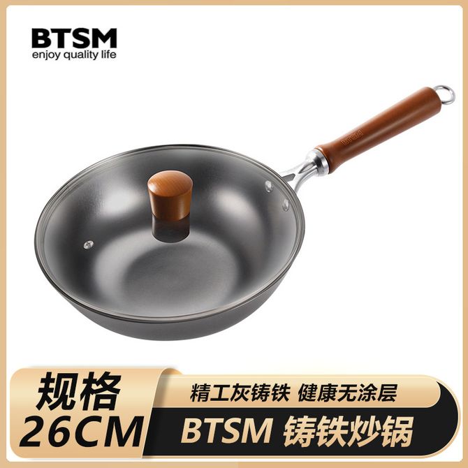 BTSM 铸铁炒锅 26cm家用精工灰铸铁健康无涂层厨房烹饪炒菜锅 精工灰铸铁 健康无涂层,舒适实木手柄,不易粘好清洗 兑换价格 6100 里程 会员卡别 终身白金卡 白金卡 金卡 银卡 普通卡 儿童卡 服务 由 众生缘(江苏)互联网科技有限公司 发货并提供售后 颜色: 其他 购买数量: 件 库存件 配送地址: 立即购买 加入购物车 成功添加到购物车 关闭 购物车共有 种商品 总金额为: 组合销售 产品介绍 产品规格 售后服务 产品咨询 发现好货 苏泊尔 炫彩易洁不粘炒锅 NC30F4 8700 里程 九阳(Joyoung)炒锅家用32cm无涂层铸铁炒菜锅可立盖CF32C-CJ232-A 4400 里程 炊大皇/Cookerking 炒锅 30cm+盖子 无涂层聚油爆炒精铁锅炒菜锅电磁炉燃气通用锅具精铁锅 3900 里程 张小泉 32CM匠艺老铁锅多炉可用精铁炒锅锅具厨具C30240100 8300 里程 爱仕达/ASD 新不粘煎炒锅炒锅28cm不粘锅炒菜锅平底煎炒锅WG8328E 4800 里程
