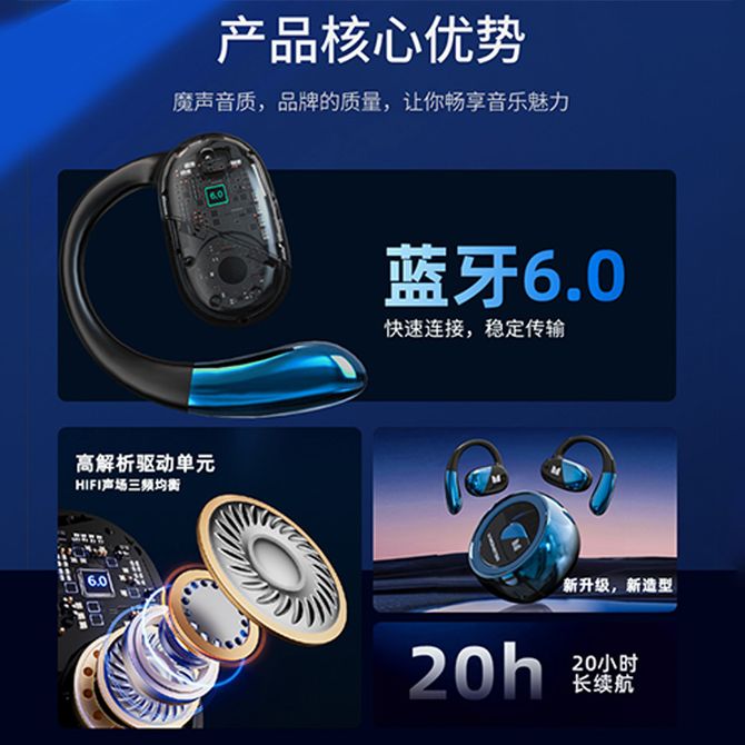 魔声 蓝牙耳机挂耳式不入耳开放式音乐HIFI音质运动智能降噪 MQO40肤色 蓝牙6.0 智能通话降噪 兑换价格 3900 里程 会员卡别 终身白金卡 白金卡 金卡 银卡 普通卡 儿童卡 服务 由 贝洛美智能科技精品馆 发货并提供售后 颜色: 其他 购买数量: 件 库存件 配送地址: 立即购买 加入购物车 成功添加到购物车 关闭 购物车共有 种商品 总金额为: 组合销售 产品介绍 产品规格 售后服务 产品咨询 发现好货 雷摄 运动蓝牙耳机无线跑步超长续航待机半入耳降噪高端健身2024新款 BT-03半入耳 1400 里程 华为/Huawei FreeBuds SE 3 无线蓝牙耳机 流光金 6100 里程 纽曼 LY63蓝牙耳机耳夹式骨传导概念开放式不入耳无线运动音乐通话降噪 3400 里程 纽曼(Newmine) 夹耳式蓝牙耳机 超无感佩戴空气感舒适体验 LY63 3400 里程 飞利浦(PHILIPS) 骨传导通话降噪耳夹式真无线开放耳机TAT3469 7000 里程