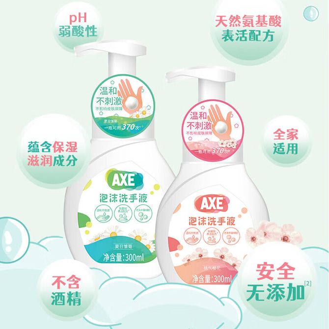 斧头牌(AXE) 泡沫洗手液(桃气樱花)300ml 泡沫洗手液(桃气樱花)300ml 兑换价格 1200 里程 会员卡别 终身白金卡 白金卡 金卡 银卡 普通卡 儿童卡 服务 由 二向箔个护家清专营店 发货并提供售后 清洁剂容量: 300ml 净含量: 300ml 购买数量: 件 库存件 配送地址: 立即购买 加入购物车 成功添加到购物车 关闭 购物车共有 种商品 总金额为: 组合销售 产品介绍 产品规格 售后服务 产品咨询 发现好货 超能 西柚祛腥洗洁精1kg*2瓶 家用果蔬清洗剂 1200 里程 滴露/Dettol 滋润倍护洗手液500g*2两瓶装 1900 里程 滴露/Dettol 泡沫抑菌洗手液青柠香型250ml 1300 里程 蓝月亮 卫诺沁香花园香氛洁厕液 500g×6瓶 4100 里程 威露士 洗手液 倍护滋润250ml *2瓶 深入洁净有效抑菌温和滋润清洁双手 1100 里程