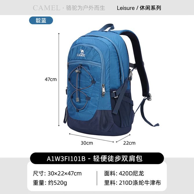 骆驼/Camel 户外双肩包男女徒步旅行运动登山包 A1W3FI101B,靛蓝 轻便 耐磨 双肩包 兑换价格 9600 里程 会员卡别 终身白金卡 白金卡 金卡 银卡 普通卡 儿童卡 服务 由 威嘉宏户外馆 发货并提供售后 颜色: 蓝色 购买数量: 件 库存件 配送地址: 立即购买 加入购物车 成功添加到购物车 关闭 购物车共有 种商品 总金额为: