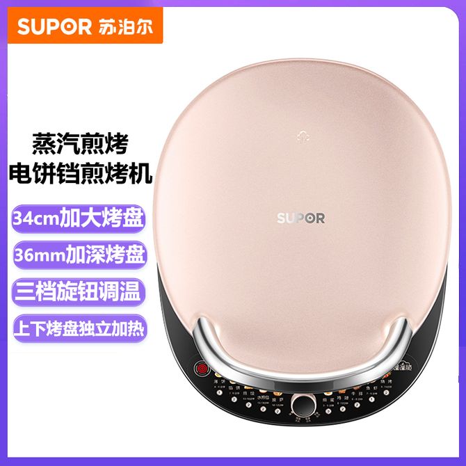 苏泊尔(SUPOR) 蒸汽煎烤电饼铛煎烤机双面加热煎饼铛家用早餐机三明治机烙饼机加大加深烤盘 蒸汽煎烤电饼铛煎烤机 34cm加大烤盘 36mm加深烤盘 三档旋钮调温 上下烤盘独立加热 兑换价格 10900 里程 会员卡别 终身白金卡 白金卡 金卡 银卡 普通卡 儿童卡 服务 由 广西自贸区京通桂达科技发展有限公司 发货并提供售后 颜色: 其他 购买数量: 件 库存件 配送地址: 立即购买 加入购物车 成功添加到购物车 关闭 购物车共有 种商品 总金额为: 组合销售 产品介绍 产品规格 售后服务 产品咨询 发现好货 苏泊尔(SUPOR)电饼铛家用 双面加热煎饼铛煎烤机三明治机烙饼锅早餐机25mm加深烤盘火力可调JD31A847A 6500 里程 苏泊尔(SUPOR) 电饼铛 自动煎烤机 电火锅多功能 加大加深60mm双加热烙饼 锅面煎饼电饼档 两档火力 JT30A818 5700 里程 苏泊尔(SUPOR)电饼铛家用双面加热电饼档煎烤机烙饼机双面悬浮加热早餐机三明治机JJ30A648-Q 5700 里程 美的(Midea)电饼铛家用智能双面加热煎烤机烙饼机蛋饼机薄饼机煎饼烙饼锅JHN30F 4800 里程 奥克斯 电饼铛家庭用新款双面加热加大尺寸加深烤盘烙饼专用锅自动控温断电煎饼锅早餐机 5200 里程