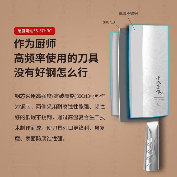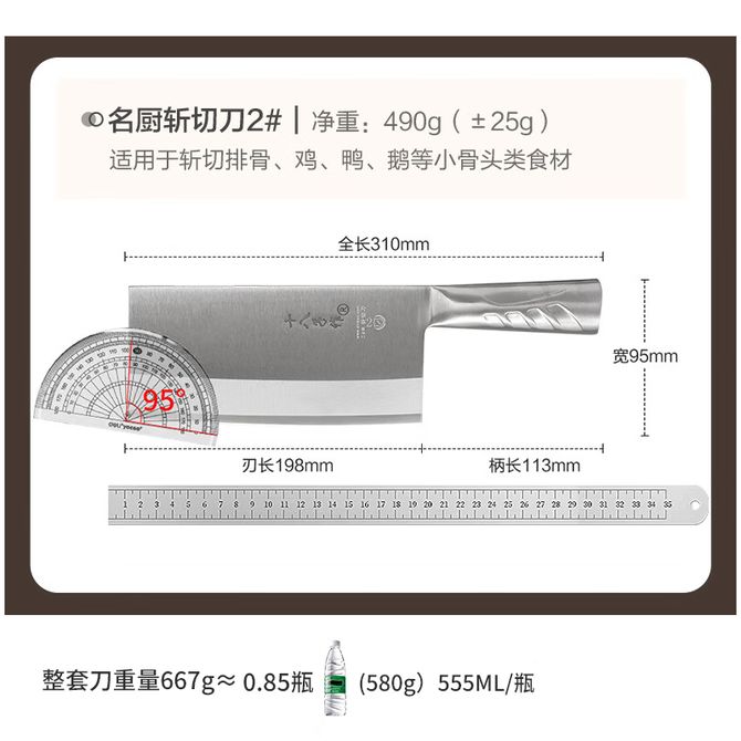 十八子作 名厨2号斩切刀 中式专业厨师刀具 三层复合锋利加倍钢菜刀 三层复合 锋利加倍 耐用度好 复合不锈钢80Cr13 强度高锋利持久性好 兑换价格 5000 里程 会员卡别 终身白金卡 白金卡 金卡 银卡 普通卡 儿童卡 服务 由 成都得之悦电子商务有限公司 发货并提供售后 颜色: 其他 购买数量: 件 库存件 配送地址: 立即购买 加入购物车 成功添加到购物车 关闭 购物车共有 种商品 总金额为: 组合销售 产品介绍 产品规格 售后服务 产品咨询 发现好货 拜格(Bayco) 锤纹菜刀家用切片刀厨师刀 BD2957 1100 里程 张小泉 家用女士专用菜刀切片刀免磨不锈钢厨房刀具PD-170 2200 里程 张小泉 家用菜刀炫系列切片刀切肉单刀菜刀D-51032100 1700 里程 拜格(Bayco) 不锈钢菜刀三件套刀具套装菜刀斩骨刀水果刀组合 BD3453 1700 里程 张小泉黑金刚刀具二件套 D40170100 3500 里程