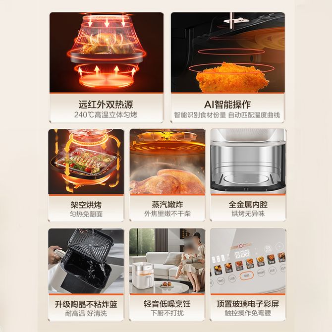 组合销售 产品介绍 产品规格 售后服务 产品咨询 发现好货 苏泊尔(SUPOR)空气炸锅 家用多功能4.2L大容量 烤箱薯条机 无油烟电炸锅 大功率 无油低脂煎炸锅KJ42D811 7800 里程 美的/Midea 空气炸锅 家用5升可视炸锅金属内腔体微蒸汽多功能智能双旋控温电炸锅 KZE5089 10900 里程 奥克斯/AUX 空气炸锅5L电炸锅多功能大容量无油电炸锅空气炸锅机械款 4.5L 机械款 AUX-3002M 复古绿 6500 里程 奥克斯 电火锅 电炒锅 电煮锅 火锅锅 电锅一体锅 家用多功能料理烤肉电热锅 多用途锅大容量 无笼款 5L 4800 里程 苏泊尔(SUPOR)多功能锅料理锅电火锅多用途电煮锅不粘电热锅家用电炒锅方形烤盘煎烤锅JD3424D08-150 YL 13000 里程