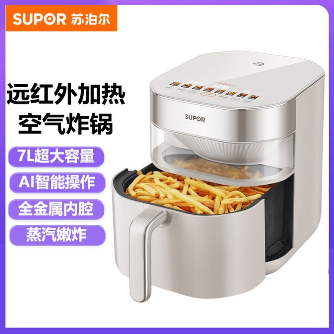 苏泊尔(SUPOR) 家用空气炸锅 7L超大容量 远红外加热轻油电炸锅电炸篮炸薯条机炸鸡翅机 远红外加热 空气炸锅 7L超大容量 AI智能操作 全金属内腔 蒸汽嫩炸 兑换价格 23500 里程 会员卡别 终身白金卡 白金卡 金卡 银卡 普通卡 儿童卡 服务 由 广西自贸区京通桂达科技发展有限公司 发货并提供售后 颜色: 其他 购买数量: 件 库存件 配送地址: 立即购买 加入购物车 成功添加到购物车 关闭 购物车共有 种商品 总金额为: 组合销售 产品介绍 产品规格 售后服务 产品咨询 发现好货 苏泊尔(SUPOR)空气炸锅 家用多功能4.2L大容量 烤箱薯条机 无油烟电炸锅 大功率 无油低脂煎炸锅KJ42D811 7800 里程 美的/Midea 空气炸锅 家用5升可视炸锅金属内腔体微蒸汽多功能智能双旋控温电炸锅 KZE5089 10900 里程 奥克斯/AUX 空气炸锅5L电炸锅多功能大容量无油电炸锅空气炸锅机械款 4.5L 机械款 AUX-3002M 复古绿 6500 里程 奥克斯 电火锅 电炒锅 电煮锅 火锅锅 电锅一体锅 家用多功能料理烤肉电热锅 多用途锅大容量 无笼款 5L 4800 里程 苏泊尔(SUPOR)多功能锅料理锅电火锅多用途电煮锅不粘电热锅家用电炒锅方形烤盘煎烤锅JD3424D08-150 YL 13000 里程