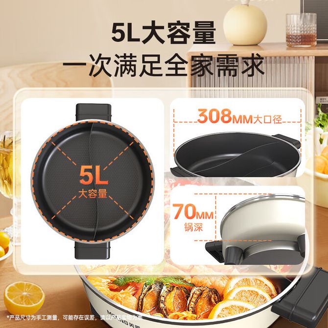 美菱/MELNG 5-8个人电火锅5升电煮锅不粘锅圆形家用多用途MT-W5120 铝合金锅体 旋钮控温 不沾涂层内胆 1360W大火力 兑换价格 4800 里程 会员卡别 终身白金卡 白金卡 金卡 银卡 普通卡 儿童卡 服务 由 弘济家电 发货并提供售后 颜色: 白色 购买数量: 件 库存件 配送地址: 立即购买 加入购物车 成功添加到购物车 关闭 购物车共有 种商品 总金额为: 组合销售 产品介绍 产品规格 售后服务 产品咨询 发现好货 苏泊尔(SUPOR)空气炸锅 家用多功能4.2L大容量 烤箱薯条机 无油烟电炸锅 大功率 无油低脂煎炸锅KJ42D811 7800 里程 美的/Midea 空气炸锅 家用5升可视炸锅金属内腔体微蒸汽多功能智能双旋控温电炸锅 KZE5089 10900 里程 奥克斯/AUX 空气炸锅5L电炸锅多功能大容量无油电炸锅空气炸锅机械款 4.5L 机械款 AUX-3002M 复古绿 6500 里程 奥克斯 电火锅 电炒锅 电煮锅 火锅锅 电锅一体锅 家用多功能料理烤肉电热锅 多用途锅大容量 无笼款 5L 4800 里程 苏泊尔(SUPOR)多功能锅料理锅电火锅多用途电煮锅不粘电热锅家用电炒锅方形烤盘煎烤锅JD3424D08-150 YL 13000 里程