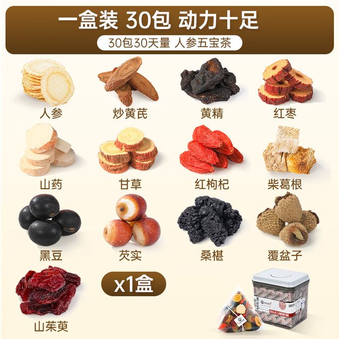 谷记老谷头/GUJILAOGUTOU 人参五宝茶300g(30包) 男士茶 老谷头袋装人参黄精五宝茶桑葚枸杞覆盆子山茱萸黑豆茶养生茶 【赠冰糖】30包人参五宝茶 兑换价格 3700 里程 会员卡别 终身白金卡 白金卡 金卡 银卡 普通卡 儿童卡 服务 由 啊兔食品专营店 发货并提供售后 规格: 盒装 购买数量: 件 库存件 配送地址: 立即购买 加入购物车 成功添加到购物车 关闭 购物车共有 种商品 总金额为: