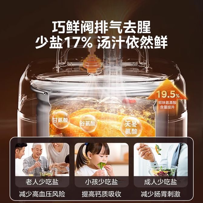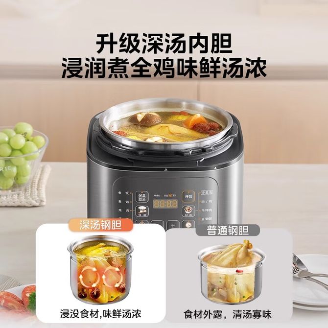 组合销售 产品介绍 产品规格 售后服务 产品咨询 发现好货 苏泊尔(SUPOR)电压力锅 6升大容量 智能触控 球釜双胆 开盖收汁 一键排压 SY-60YC8001Q 高压锅 16900 里程 美的/Midea 电压力锅家用5L大容量多功能高压锅双胆一键收汁智能预约不粘电高压锅电饭锅煮粥煲汤锅 一锅双胆【一键收汁入味】 YL50M1-702 10600 里程 苏泊尔(SUPOR) 5L电压力锅家用电高压锅双胆高压电饭锅煮饭智能预约 SY-50YC8186 11300 里程 美的/Midea 电压力锅 【一锅双胆】5L全自动家用智能预约 上蒸下煮 不粘双胆煲汤炖肉 YL50Q3-451 10900 里程 美的/Midea 电压力锅 高压锅家用电压力煲智能预约电饭煲大容量多功能定时预约电饭煲3-8人单胆旋钮款4L MY-E4809 8700 里程