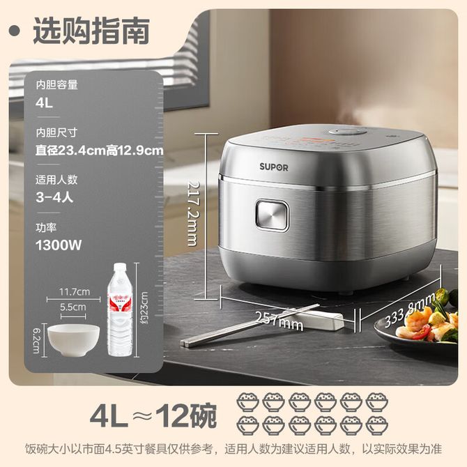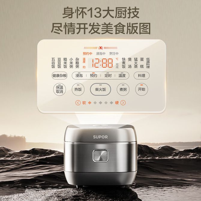 组合销售 产品介绍 产品规格 售后服务 产品咨询 发现好货 苏泊尔(SUPOR) 电饭煲电饭锅4L大容量 不粘内胆4-6个人前置大屏面板24小时预约上蒸下煮多功能家用智能SF40FC0063 7700 里程 美菱/MELNG 电饭煲3L触控式预约定时MF-LC3005 4400 里程 美的(Midea) 电饭煲 家用3L智能预约多功能电饭锅小型1-4人煮饭锅智能 白色 MB-FB30M161 7800 里程 康佳/Konka 迷你电饭煲小电饭锅2L容量智能温控12小时预约煮饭煮粥锅 4800 里程 美的/Midea 电饭煲电饭锅3-4个人家用4L大容量聚能釜金属机身大火力米饭锅【升级焖香阀】RE417 8700 里程
