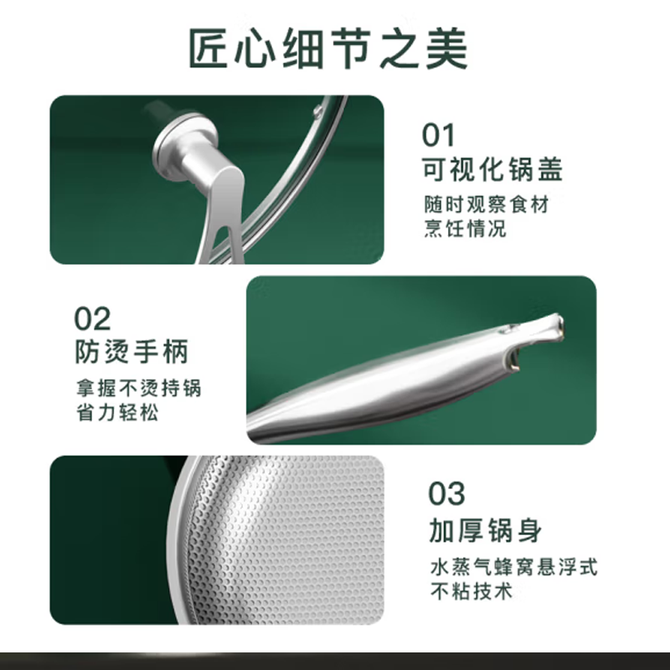 组合销售 产品介绍 产品规格 售后服务 产品咨询 发现好货 苏泊尔 炫彩易洁不粘炒锅 NC30F4 8700 里程 九阳(Joyoung)炒锅家用32cm无涂层铸铁炒菜锅可立盖CF32C-CJ232-A 4400 里程 炊大皇/Cookerking 炒锅 30cm+盖子 无涂层聚油爆炒精铁锅炒菜锅电磁炉燃气通用锅具精铁锅 3900 里程 张小泉 32CM匠艺老铁锅多炉可用精铁炒锅锅具厨具C30240100 8300 里程 爱仕达/ASD 新不粘煎炒锅炒锅28cm不粘锅炒菜锅平底煎炒锅WG8328E 4800 里程
