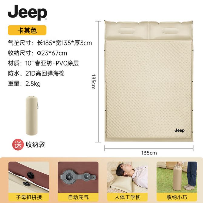 Jeep 自充气户外露营海绵床垫气垫 双人款185*135*3cm 双人款、185*135*3cm 兑换价格 7300 里程 会员卡别 终身白金卡 白金卡 金卡 银卡 普通卡 儿童卡 服务 由 至恩户外运动专营店 发货并提供售后 颜色: 卡其色 购买数量: 件 库存件 配送地址: 立即购买 加入购物车 成功添加到购物车 关闭 购物车共有 种商品 总金额为: