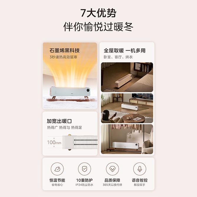 美的/Midea 踢脚线取暖器石墨烯速热全屋取暖一机多用10重防护家用取暖器 语音智控 无光低噪 恒温节能 隐藏式提手 兑换价格 20400 里程 会员卡别 终身白金卡 白金卡 金卡 银卡 普通卡 儿童卡 服务 由 北京致诚博雅贸易有限公司 发货并提供售后 颜色: 其他 购买数量: 件 库存件 配送地址: 立即购买 加入购物车 成功添加到购物车 关闭 购物车共有 种商品 总金额为: