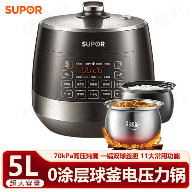 苏泊尔(SUPOR) 电压力锅 5L 多功能家用球釜双胆智能预约口感可选电高压锅压力锅 锅双球釜 70kPa高压炖煮 5L大容量 11大常用功能 兑换价格 20000 里程 会员卡别 终身白金卡 白金卡 金卡 银卡 普通卡 儿童卡 服务 由 广西桂福礼供应链管理有限公司 发货并提供售后 颜色: 其他 购买数量: 件 库存件 配送地址: 立即购买 加入购物车 成功添加到购物车 关闭 购物车共有 种商品 总金额为: