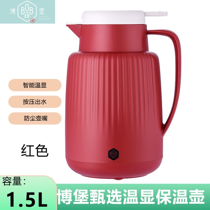 博堡/BOBER 智能温显保温壶1500ML 大容量高颜值学生宿舍居家办公热水壶暖水壶-红色款 1.5L容量红色保温壶;详情共用 ;防尘壶嘴 按压出水 长效锁温 兑换价格 3500 里程 会员卡别 终身白金卡 白金卡 金卡 银卡 普通卡 儿童卡 服务 由 广西自贸区贝佳网络科技有限公司 发货并提供售后 颜色: 红色 购买数量: 件 库存件 配送地址: 立即购买 加入购物车 成功添加到购物车 关闭 购物车共有 种商品 总金额为: 组合销售 产品介绍 产品规格 售后服务 产品咨询 发现好货 苏泊尔(SUPOR)保温壶家用2L大容量304不锈钢保温水壶暖水瓶热水壶TKC-200-KH53奶油白 5700 里程 天喜 保温壶大容量热水瓶暖瓶暖壶保温瓶家用保温瓶学生宿舍开水瓶TBB142-1600 1500 里程 天喜 保温壶1900ml家用热水瓶欧式保温瓶暖壶玻璃内胆暖瓶大容量保温水壶TBB142-1900 1800 里程 美厨(MAXCOOK) 2.0L保温壶不锈钢大容量内胆真空保温水壶办公室家用暖壶MCH-056 2600 里程 九阳/Joyoung 保温壶家用热水瓶保温瓶水壶暖水壶2L大容量304不锈钢暖瓶-B20LF2S(白色) 4800 里程