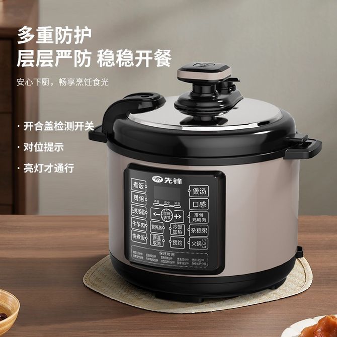 先锋 5L容量 1000W大火力 24小时预约 多功能电压力锅 QT-X1-50-B-D 5L聚享容量/1000W大火力/24小时预约 兑换价格 8700 里程 会员卡别 终身白金卡 白金卡 金卡 银卡 普通卡 儿童卡 服务 由 弘济家电 发货并提供售后 颜色: 黑色 购买数量: 件 库存件 配送地址: 立即购买 加入购物车 成功添加到购物车 关闭 购物车共有 种商品 总金额为: 组合销售 产品介绍 产品规格 售后服务 产品咨询 发现好货 苏泊尔(SUPOR)电压力锅 6升大容量 智能触控 球釜双胆 开盖收汁 一键排压 SY-60YC8001Q 高压锅 16900 里程 苏泊尔(SUPOR) 5L电压力锅家用电高压锅双胆高压电饭锅煮饭智能预约 SY-50YC8186 11300 里程 美的/Midea 电压力锅 【一锅双胆】5L全自动家用智能预约 上蒸下煮 不粘双胆煲汤炖肉 YL50Q3-451 10900 里程 美的/Midea 电压力锅 【双胆】5升大容量电饭煲全自动智能饭锅多功能高压锅 24小时智能预约 MY-E523 10400 里程 九阳/Joyoung 电压力锅5L家用电饭锅压力煲电高压锅煮饭锅电饭锅电饭煲全自动智能预约 Y-50C31 11000 里程