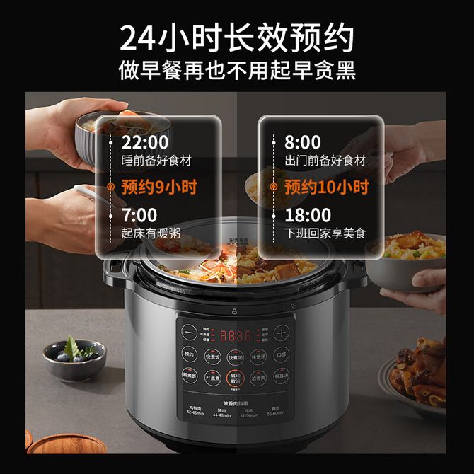组合销售 产品介绍 产品规格 售后服务 产品咨询 发现好货 苏泊尔(SUPOR)电压力锅 6升大容量 智能触控 球釜双胆 开盖收汁 一键排压 SY-60YC8001Q 高压锅 16900 里程 苏泊尔(SUPOR) 5L电压力锅家用电高压锅双胆高压电饭锅煮饭智能预约 SY-50YC8186 11300 里程 美的/Midea 电压力锅 【一锅双胆】5L全自动家用智能预约 上蒸下煮 不粘双胆煲汤炖肉 YL50Q3-451 10900 里程 美的/Midea 电压力锅 【双胆】5升大容量电饭煲全自动智能饭锅多功能高压锅 24小时智能预约 MY-E523 10400 里程 九阳/Joyoung 电压力锅5L家用电饭锅压力煲电高压锅煮饭锅电饭锅电饭煲全自动智能预约 Y-50C31 11000 里程