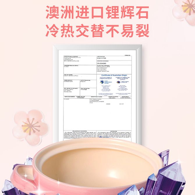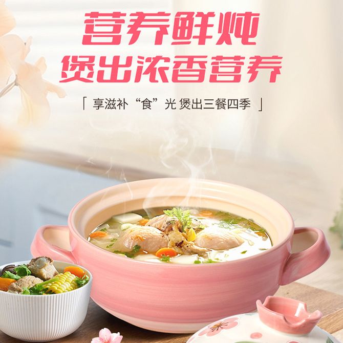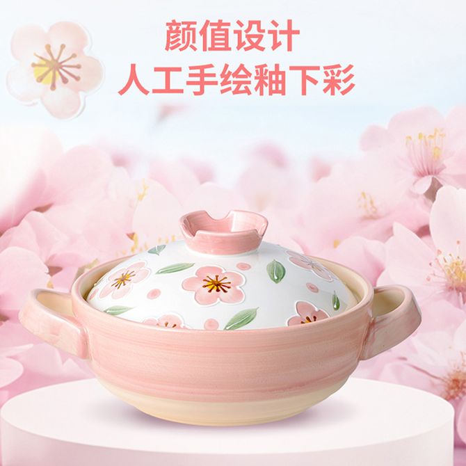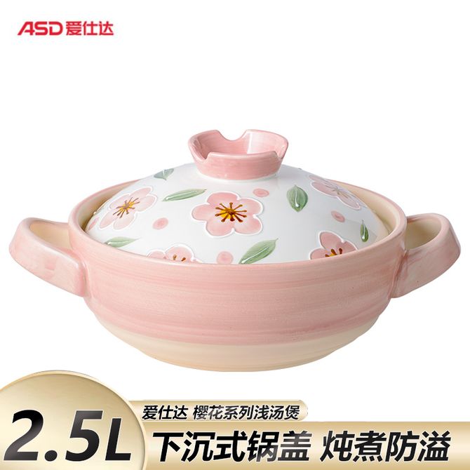 爱仕达/ASD 樱花系列浅汤煲 2.5L 家用多功能煲锅汤锅耐高温冷热不易开裂高颜值煲汤锅砂锅