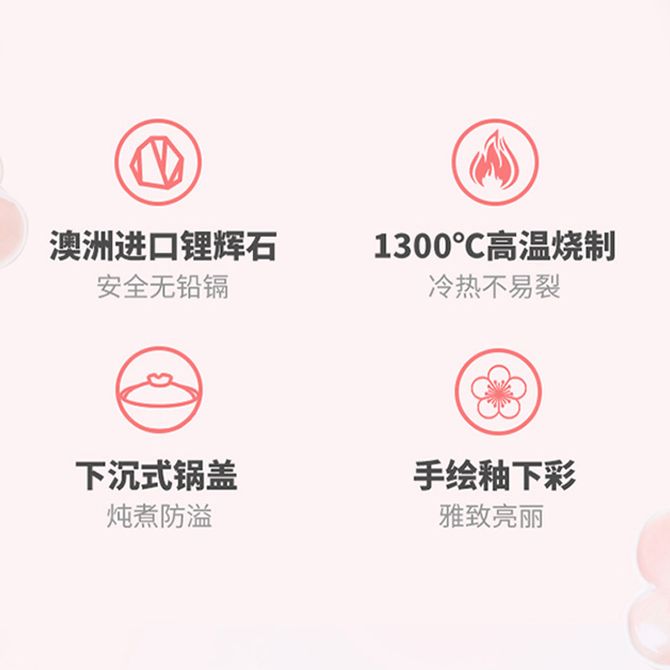 安全无铅镉 冷热不易裂 下沉式锅盖 手绘釉下彩