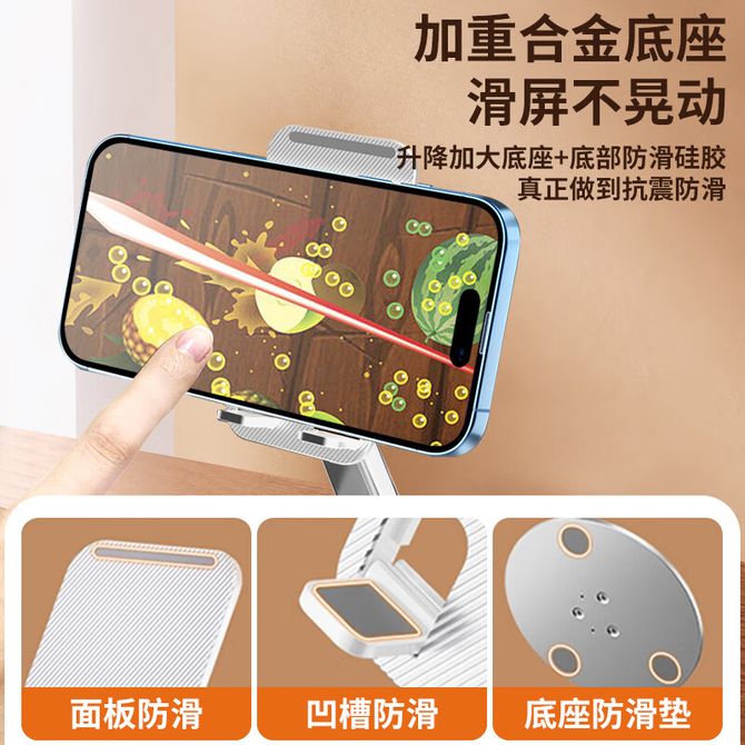 HYUNDAI 360°旋转桌面手机支架可旋转升降懒人直播拍视频追剧神器 YH-C002牛奶白
