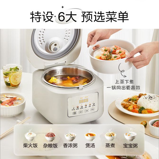 组合销售 产品介绍 产品规格 售后服务 产品咨询 发现好货 苏泊尔(SUPOR) 电饭煲电饭锅4L大容量 不粘内胆4-6个人前置大屏面板24小时预约上蒸下煮多功能家用智能SF40FC0063 7700 里程 美菱/MELNG 电饭煲3L触控式预约定时MF-LC3005 4400 里程 美的(Midea) 电饭煲 家用3L智能预约多功能电饭锅小型1-4人煮饭锅智能 白色 MB-FB30M161 7800 里程 康佳/Konka 迷你电饭煲小电饭锅2L容量智能温控12小时预约煮饭煮粥锅 4800 里程 美的/Midea 电饭煲电饭锅3-4个人家用4L大容量聚能釜金属机身大火力米饭锅【升级焖香阀】RE417 8700 里程