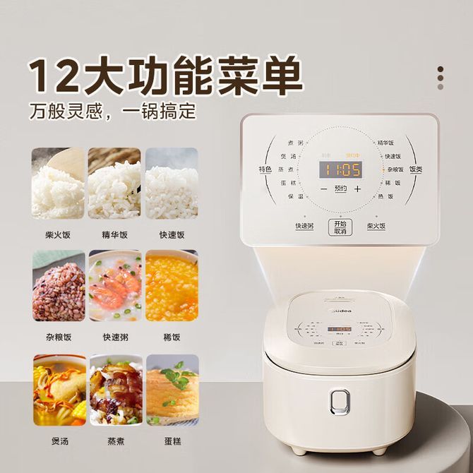 组合销售 产品介绍 产品规格 售后服务 产品咨询 发现好货 苏泊尔(SUPOR) 电饭煲电饭锅4L大容量 不粘内胆4-6个人前置大屏面板24小时预约上蒸下煮多功能家用智能SF40FC0063 7700 里程 美菱/MELNG 电饭煲3L触控式预约定时MF-LC3005 4400 里程 美的(Midea) 电饭煲 家用3L智能预约多功能电饭锅小型1-4人煮饭锅智能 白色 MB-FB30M161 7800 里程 康佳/Konka 迷你电饭煲小电饭锅2L容量智能温控12小时预约煮饭煮粥锅 4800 里程 美的/Midea 电饭煲电饭锅3-4个人家用4L大容量聚能釜金属机身大火力米饭锅【升级焖香阀】RE417 8700 里程