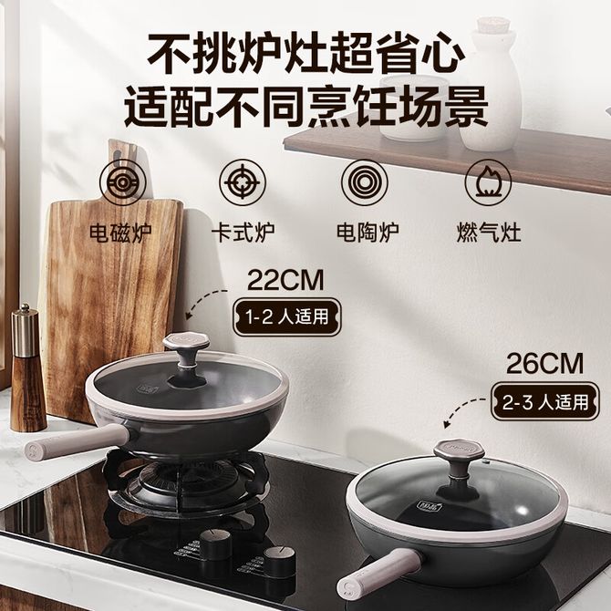 苏泊尔(SUPOR) 陶瓷覆层电磁炉燃气灶通用 【可炒菜】直径 26cm 平底锅不粘锅 家用煎蛋牛排煎锅煎炒锅 兑换价格 10400 里程 会员卡别 终身白金卡 白金卡 金卡 银卡 普通卡 儿童卡 服务 由 人人余厨具专营店 发货并提供售后 颜色: 浅灰色 购买数量: 件 库存件 配送地址: 立即购买 加入购物车 成功添加到购物车 关闭 购物车共有 种商品 总金额为: 组合销售 产品介绍 产品规格 售后服务 产品咨询 发现好货 苏泊尔 炫彩易洁不粘炒锅 NC30F4 8700 里程 苏泊尔(SUPOR) 臻火蜂窝铁锅32cm 家用无涂层老式熟铁炒锅平底煎炒锅锅具 3400 里程 拜格(Bayco) 平底炒锅煎蛋锅平底锅锤纹小铁锅BG50137【28cm】 1900 里程 德世朗(DESLON) 无涂层炒锅铁锅可视化盖龙鳞0氟精铁不粘炒锅32cm炒菜锅炉灶通用 黑色 3500 里程 炊大皇/Cookerking 炒锅 30cm+盖子 无涂层聚油爆炒精铁锅炒菜锅电磁炉燃气通用锅具精铁锅 3900 里程