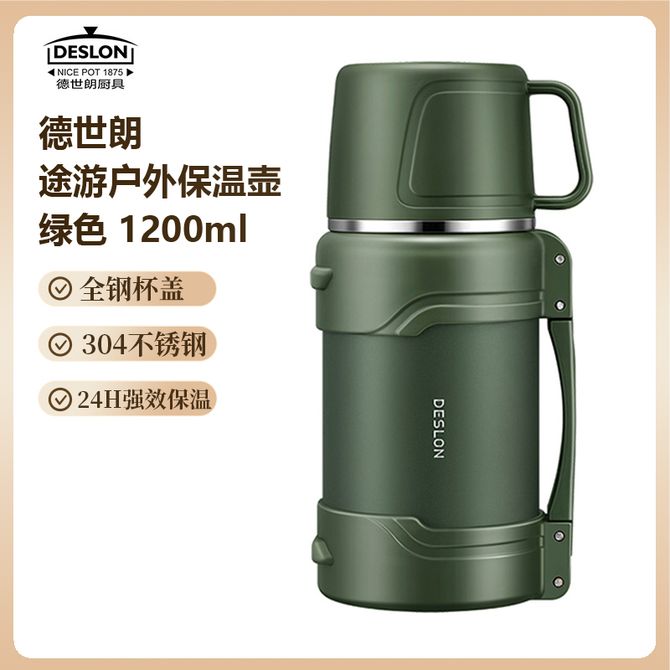 德世朗(DESLON) 途游户外保温壶 1.2L绿色 大容量不锈钢暖水壶热水瓶户外车载便携旅行壶 304不锈钢,全钢杯盖,24H强效保温,按压式弹跳开关,详情共用 兑换价格 4800 里程 会员卡别 终身白金卡 白金卡 金卡 银卡 普通卡 儿童卡 服务 由 广西自贸区贝佳网络科技有限公司 发货并提供售后 颜色: 绿色 购买数量: 件 库存件 配送地址: 立即购买 加入购物车 成功添加到购物车 关闭 购物车共有 种商品 总金额为: