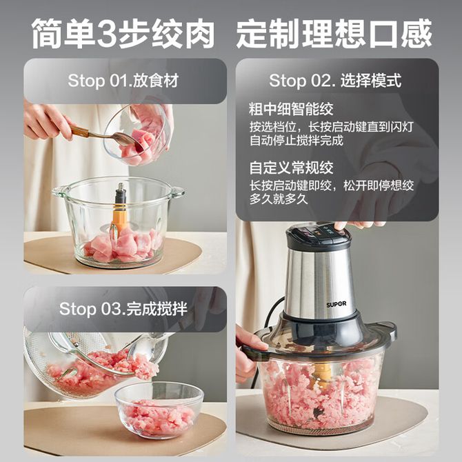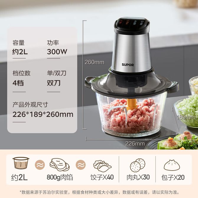 组合销售 产品介绍 产品规格 售后服务 产品咨询 发现好货 卡屋KAWU 绞肉机2.3L家用电动碎肉机PY-37930一副刀片 3300 里程 小熊/Bear 绞肉机家用绞馅机碎肉机电动多功能料理搅拌打肉饺子肉馅蒜蓉机切碎机QSJ-D03W5 4000 里程 小熊/Bear 绞肉机家用QSJ-E03K6 绞馅机 碎肉机 电动多功能料理蒜蓉机 3400 里程 苏泊尔(SUPOR) 绞肉机家用多功能电动碎肉机料理机 辅食肉馅机 蔬菜机 大容量 1.75L JR20-B175 3000 里程 卡屋kawu 蒜蓉器多功能电动无线蒜泥机 1700 里程