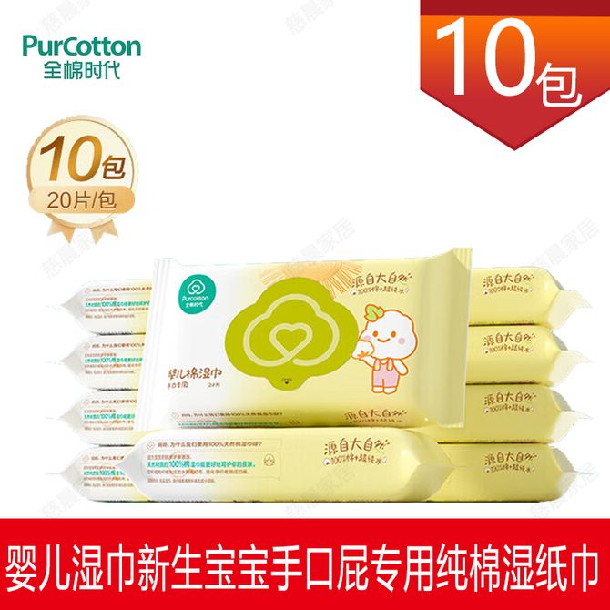 全棉时代/PURCOTTON 婴儿湿巾新生宝宝手口屁专用纯棉湿纸巾小包外出便携装 20抽 10包