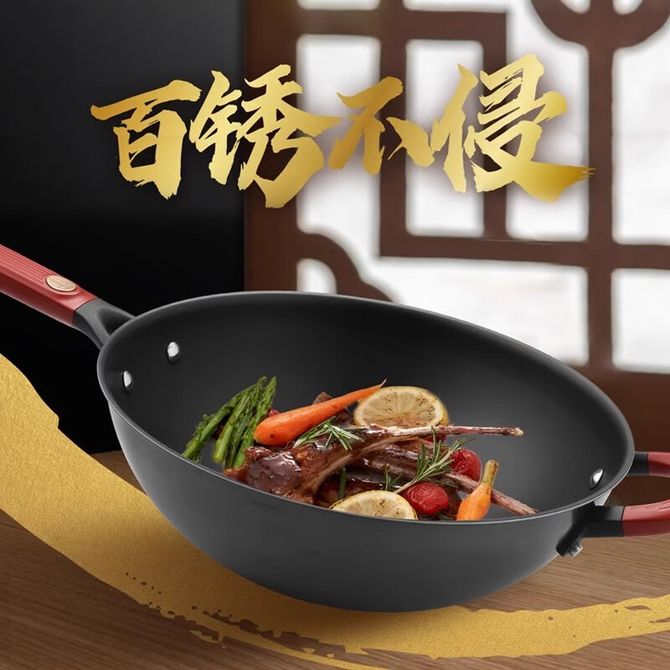 (详情图片共-34cm) 0涂层防刮 耐磨耐腐蚀 百锈不侵耐用0穿孔 轻量铁材质易掂锅 一抹净不藏污垢