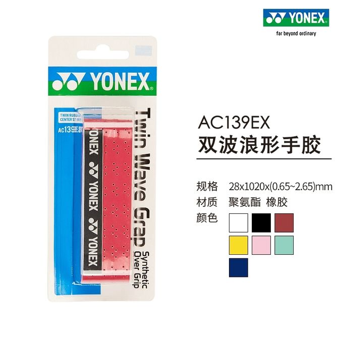 尤尼克斯(YONEX) 双波浪型手胶 AC139EX 柔软吸汗带yy 颜色随机发,有要求备注 兑换价格 1700 里程 会员卡别 终身白金卡 白金卡 金卡 银卡 普通卡 儿童卡 服务 由 小雅运动 发货并提供售后 颜色: 其他 购买数量: 件 库存件 配送地址: 立即购买 加入购物车 成功添加到购物车 关闭 购物车共有 种商品 总金额为: 组合销售 产品介绍 产品规格 售后服务 产品咨询 发现好货 川崎/KAWASAKI 羽毛球双拍超轻男女羽毛球对拍入门级训练双拍 IRON-007 8700 里程 威克多(Victor) 羽毛球拍对拍 碳素初学入门级户外运动轻量耐用对拍套装 +3只球 7400 里程 创悦(CREAJOY)健腹轮 双轮健腹器健身轮 家用健身俯卧撑轮 CY-9061 1700 里程 佑美 无绳计数跳绳减肥运动专用燃脂硅胶大球无绳款 TS50蓝色 3100 里程 佑美 泡棉无绳大球跳绳海绵手柄舒适防滑TS14粉色 1700 里程