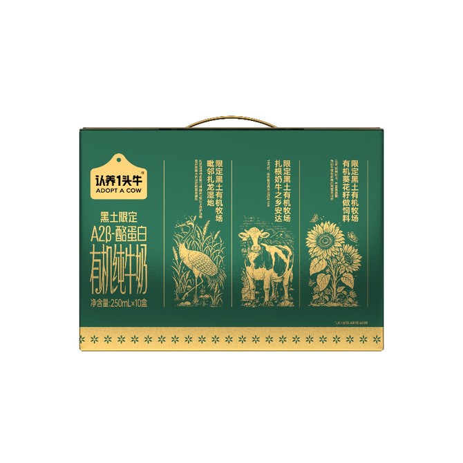 认养一头牛 有机纯牛奶梦幻盖A2β-酪蛋白3.8g蛋白250ml*10盒 礼盒装 自有专属牧场,黄金奶源带,甄选纯种A2型奶牛,全程有机饲料喂养,亲和营养好吸收,有机认证更安心 兑换价格 3000 里程 会员卡别 终身白金卡 白金卡 金卡 银卡 普通卡 儿童卡 服务 由 隆兴日盛食品优选店 发货并提供售后 规格: 礼盒 购买数量: 件 库存件 配送地址: 立即购买 加入购物车 成功添加到购物车 关闭 购物车共有 种商品 总金额为: 组合销售 产品介绍 产品规格 售后服务 产品咨询 发现好货 蒙牛 特仑苏纯牛奶苗条装250ml×12盒 2900 里程 三元 经典小方白全脂纯牛奶250ml*24盒牛奶 整箱 3400 里程 伊利金典纯牛奶250ml*12盒整箱 2200 里程 伊利 金典纯牛奶整箱 250ml*12盒 3.6g乳蛋白 原生高钙 礼盒装 1800 里程 特仑苏 新日期纯牛奶250ml*12盒 3.6g乳蛋白 礼盒装 京东/顺丰发货 2400 里程