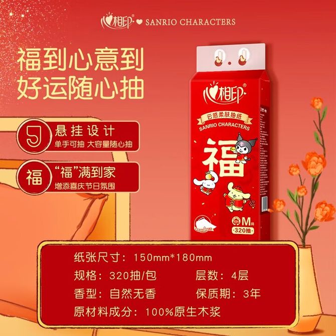 心相印 抽纸悬挂式 三丽鸥联名款云感4层320抽*4提M码 挂抽纸巾 4层320抽*4提M码 兑换价格 1600 里程 会员卡别 终身白金卡 白金卡 金卡 银卡 普通卡 儿童卡 服务 由 本贝生活 发货并提供售后 包装数量: 4提 购买数量: 件 库存件 配送地址: 立即购买 加入购物车 成功添加到购物车 关闭 购物车共有 种商品 总金额为: 组合销售 产品介绍 产品规格 售后服务 产品咨询 发现好货 维达卷纸 卫生纸实惠装厕纸家用厕所纸巾手纸整箱批有芯大卷家庭装 1200-2300 里程 维达 Vinda 卷纸 140g/卷*10卷 蓝色经典3层卫生纸 1300 里程 心相印抽纸 茶语丝享系列 量贩家庭装 3层*100抽*4包(茶香 压花) 1100 里程 心相印 经典系列 二层面巾纸 180抽*6包*1提 1100 里程 维达Vinda 超韧系列抽纸(3层*130抽*6包) 原生木浆卫生餐巾纸婴儿面巾纸 6包优惠装 1100 里程