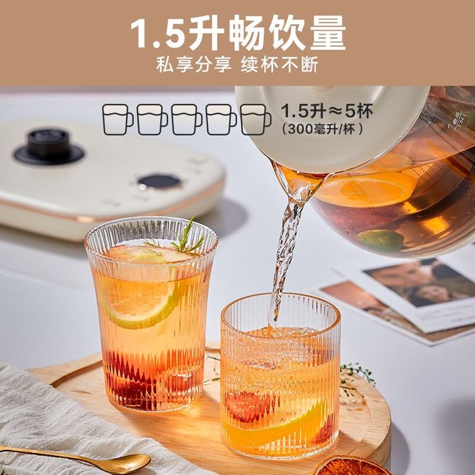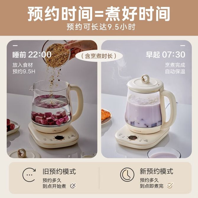 组合销售 产品介绍 产品规格 售后服务 产品咨询 发现好货 九阳/Joyoung 养生壶1.5L茶具电茶壶煮茶壶花茶壶玻璃煮茶器煎药壶中药锅药膳电水壶烧水壶 3900 里程 美的/Midea 养生壶 1.5L家用多功能小型全自动办公室烧水壶加厚玻璃煮茶热水壶 MK-YS15P201 4200 里程 美的/Midea 养生壶 1.5L家用养生壶全自动玻璃烧水壶24h预约烧水壶12小时防干烧保护智能恒温 MK-YS15P202 3500 里程 九阳/Joyoung 养生壶迷你玻璃花茶壶煮茶器 12大功能11档温度 电水壶热水壶烧水壶 1.5L DGD1506BQ 3900 里程 美的/Midea 养生壶 1.5L全自动电热水壶 24h预约12小时智能恒温 14大功能11档控温 花茶壶煮茶器MK-Y12Q 3500 里程