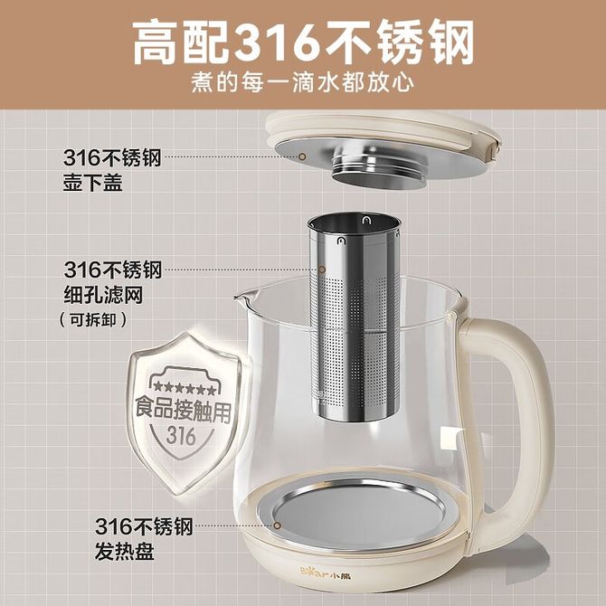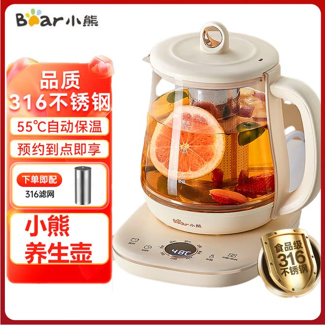 小熊/Bear 养生壶1.5L智能煮茶壶带茶漏办公室智能花茶壶家用多功能恒温煮茶器烧水壶电热水壶 【高清数显屏】 316不锈钢滤网,预约升级免计算烹煮时长,长时预约1~9.5H,八大菜单承包润养日常 兑换价格 5700 里程 会员卡别 终身白金卡 白金卡 金卡 银卡 普通卡 儿童卡 服务 由 广西桂福礼供应链管理有限公司 发货并提供售后 颜色: 其他 购买数量: 件 库存件 配送地址: 立即购买 加入购物车 成功添加到购物车 关闭 购物车共有 种商品 总金额为: