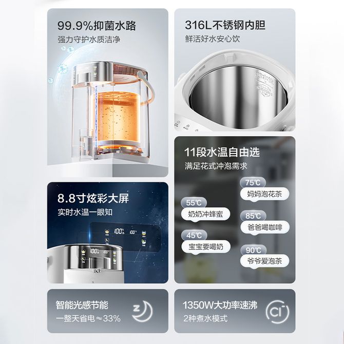 小熊/Bear 免安装饮水机 电热水瓶5L大容量316L不锈钢内胆电水瓶电水壶 烧水电热水壶宝宝夜间泡奶 316L不锈钢内胆,99.9%抑菌水路,8.8寸炫彩大屏,5L大容量 兑换价格 14800 里程 会员卡别 终身白金卡 白金卡 金卡 银卡 普通卡 儿童卡 服务 由 广西自贸区京通桂达科技发展有限公司 发货并提供售后 颜色: 其他 购买数量: 件 库存件 配送地址: 立即购买 加入购物车 成功添加到购物车 关闭 购物车共有 种商品 总金额为: