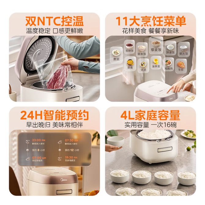 组合销售 产品介绍 产品规格 售后服务 产品咨询 发现好货 苏泊尔(SUPOR) 电饭煲电饭锅4L大容量 不粘内胆4-6个人前置大屏面板24小时预约上蒸下煮多功能家用智能SF40FC0063 7700 里程 美菱/MELNG 电饭煲3L触控式预约定时MF-LC3005 4400 里程 美的(Midea) 电饭煲 家用3L智能预约多功能电饭锅小型1-4人煮饭锅智能 白色 MB-FB30M161 7800 里程 康佳/Konka 迷你电饭煲小电饭锅2L容量智能温控12小时预约煮饭煮粥锅 4800 里程 美的/Midea 电饭煲电饭锅3-4个人家用4L大容量聚能釜金属机身大火力米饭锅【升级焖香阀】RE417 8700 里程