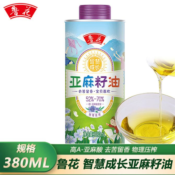鲁花 智慧成长亚麻籽油380ml去苦留香物理压榨炒菜烹饪食用油