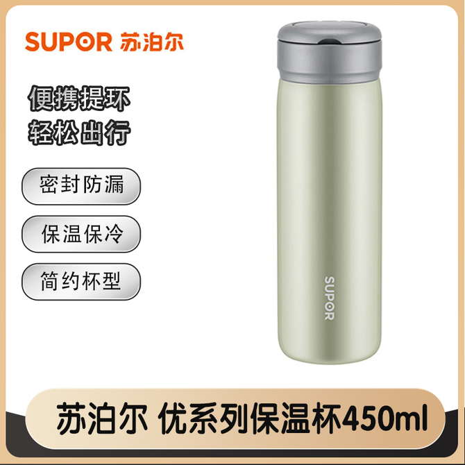 苏泊尔(SUPOR) 316L不锈钢水杯450ml保温保冷密封防漏便携户外保温杯-浅衫绿 (详情图片共用-浅衫绿)简约杯型 便携提环 保温保冷 密封防漏 316L不锈钢 兑换价格 3900 里程 会员卡别 终身白金卡 白金卡 金卡 银卡 普通卡 儿童卡 服务 由 卓鹏商贸生活馆 发货并提供售后 颜色: 其他 购买数量: 件 库存件 配送地址: 立即购买 加入购物车 成功添加到购物车 关闭 购物车共有 种商品 总金额为: 组合销售 产品介绍 产品规格 售后服务 产品咨询 发现好货 爱奇屋aichiw思悦保温杯AI-D97 1500 里程 希乐(cille) 领先保温杯XB-22172女生316水杯儿童上学专用大容量杯子冬季男款学生水壶500ml 2400 里程 爱奇屋 保温杯随行口袋杯 高颜值清新小巧水杯子280ml AI-D158 1100 里程 德铂(Debo) 480ml托马斯弹跳盖304不锈钢保温杯DEP-719 1500 里程 德铂Debo保温杯304不锈钢内胆双层茶杯白色DEP-719 1400 里程