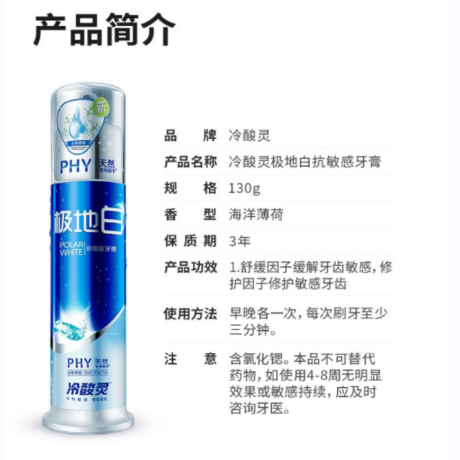 冷酸灵 抗敏感泵式美白牙膏 清新口气 极地白+极地爽2支260g 冷酸灵抗敏感泵式美白牙膏 清新口气 极地白+极地爽2支260g 兑换价格 1500 里程 会员卡别 终身白金卡 白金卡 金卡 银卡 普通卡 儿童卡 服务 由 大雅品味个护家清名品汇 发货并提供售后 化妆品容量: 其他容量 购买数量: 件 库存件 配送地址: 立即购买 加入购物车 成功添加到购物车 关闭 购物车共有 种商品 总金额为: 组合销售 产品介绍 产品规格 售后服务 产品咨询 发现好货 云南白药牙膏单支清新口气呵护牙龈健康牙周冬青 活性肽165g 1500 里程 云南白药 健齿护龈改善牙龈问题清新口气留兰香型180g 1500 里程 云南白药牙膏留兰香型180g 去黄牙垢口气清新减轻牙龈问题 1500 里程 舒客专效防蛀氟素牙膏(清新薄荷)140g*3防蛀固齿呵护口腔清新口气 1100 里程 高露洁/Colgate 劲白小苏打美白牙膏120g*2支 茉莉白茶香型 美白亮白牙齿牙黄牙渍含氟防蛀成人清新口气 1300 里程